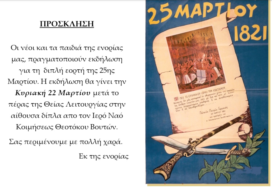 - Εκδήλωση για τη διπλή εορτή της 25ης Μαρτίου