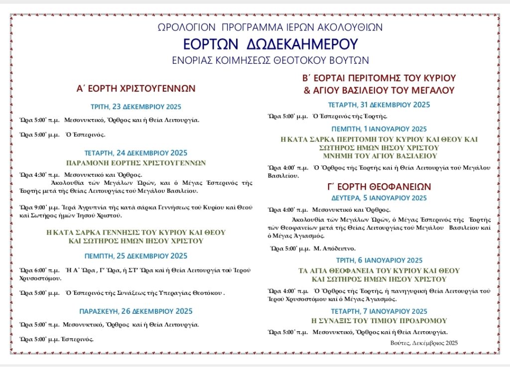 - ΠΡΟΓΡΑΜΜΑ ΙΕΡΩΝ ΑΚΟΛΟΥΘΙΩΝ ΕΟΡΤΩΝ ΔΩΔΕΚΑΗΜΕΡΟΥ